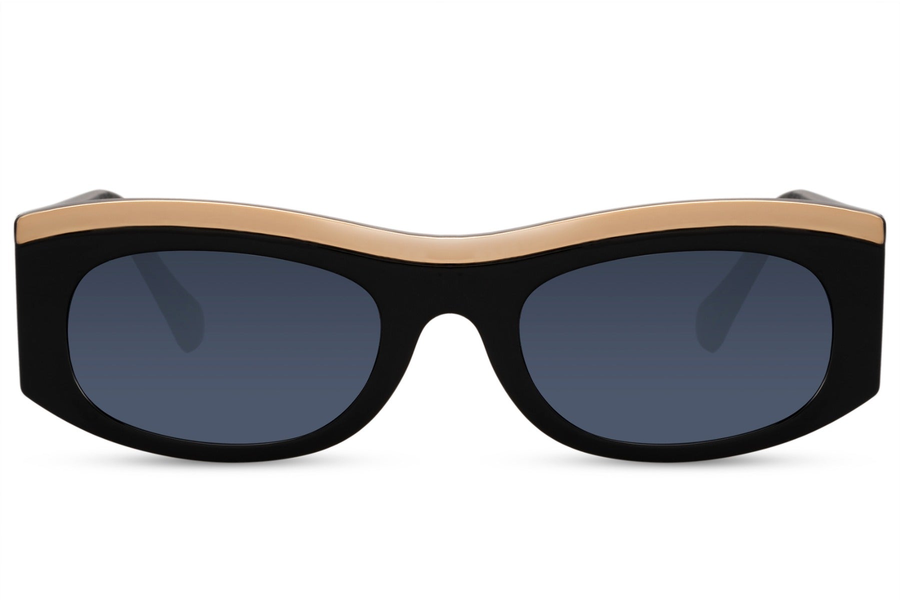 Dit strak zwarte frame met een opvallend goudaccent dat over de bovenkant buigt, zijn deze tinten de perfecte mix van elegantie en scherpte. Of je nu naar het strand gaat of als city girl door de stad loopt, Gina zal zeker de aandacht trekken.